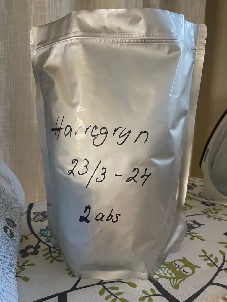 Det jag lagrade i mylarpåsar är nu ersatt av nya torrvaror i ett mindre förråd inne, som jag roterar vartefter vi äter upp maten.