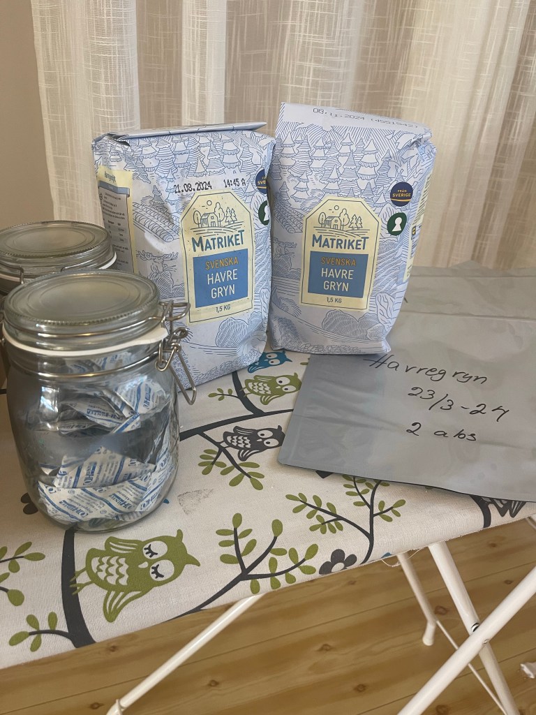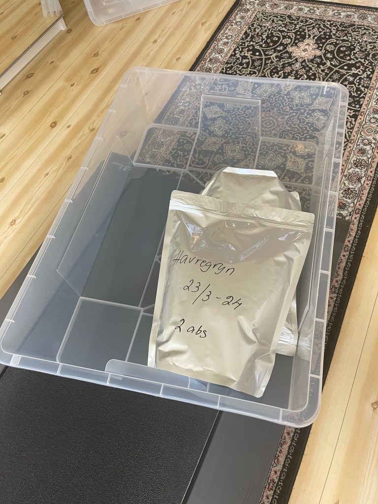 Här får nu mitt torrförråd en slutlig lagring i mylarpåsar och därefter i låga plastboxar från Ikea som smidigt får plats ovanpå våra garderober.