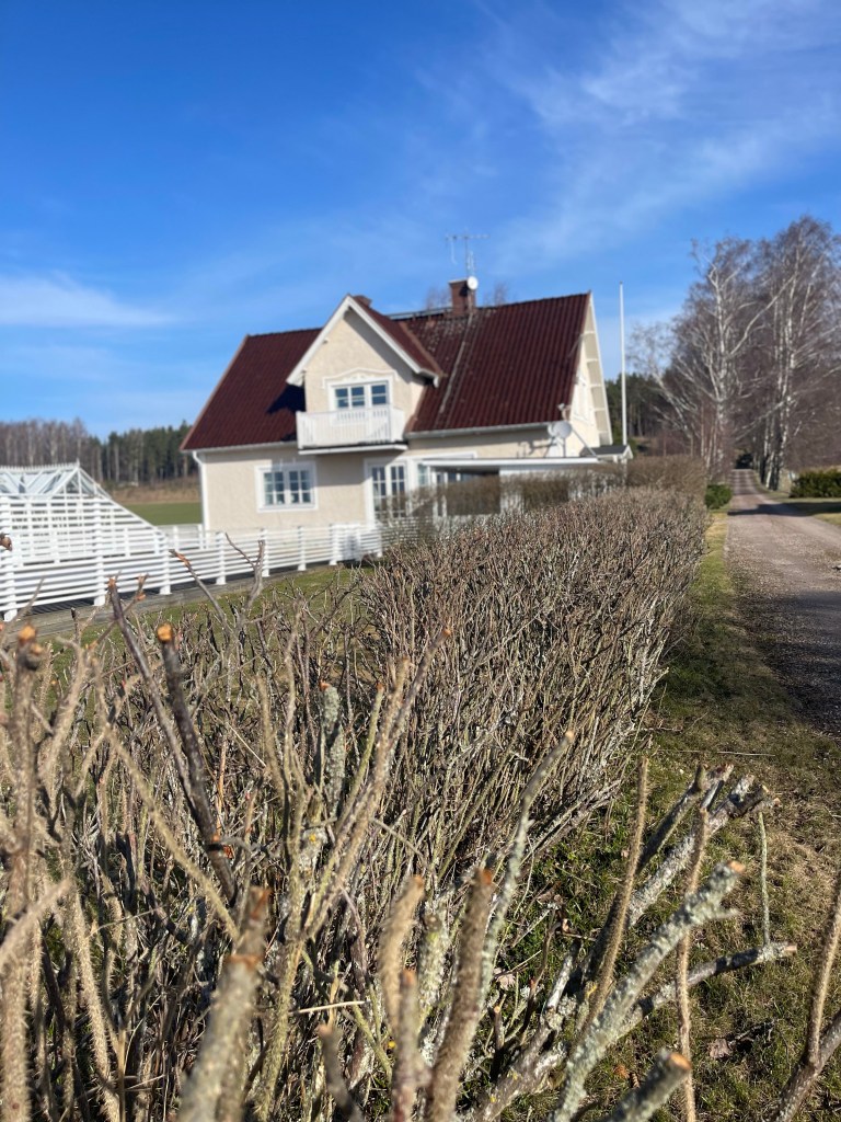 Bland annat har häckarna runt tomten fått sig en tidig men välbehövlig vårfrisyr.