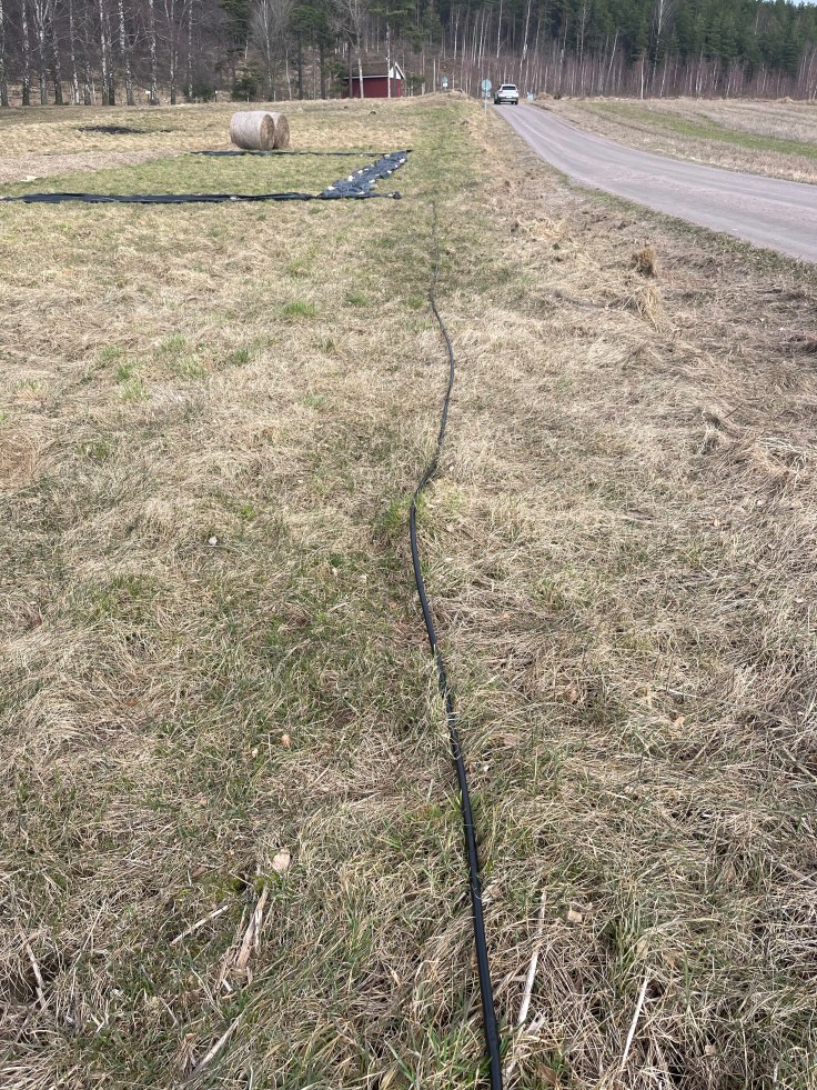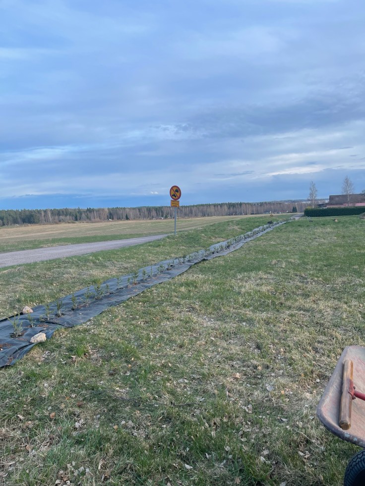 Dessförinnan hade jag lagt ut droppslang och marktäckduk på hela sträckan 175 meter.