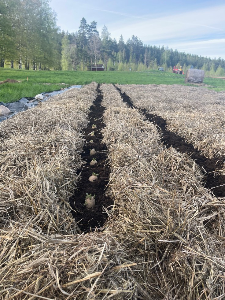 Jag har åter lyckats bra med potatis, och i år har jag tre långa rader på min nya täckodling på gärdet bredvid tunnelväxthuset. Sannolikt blir vi självförsörjande på potatis denna vinter.