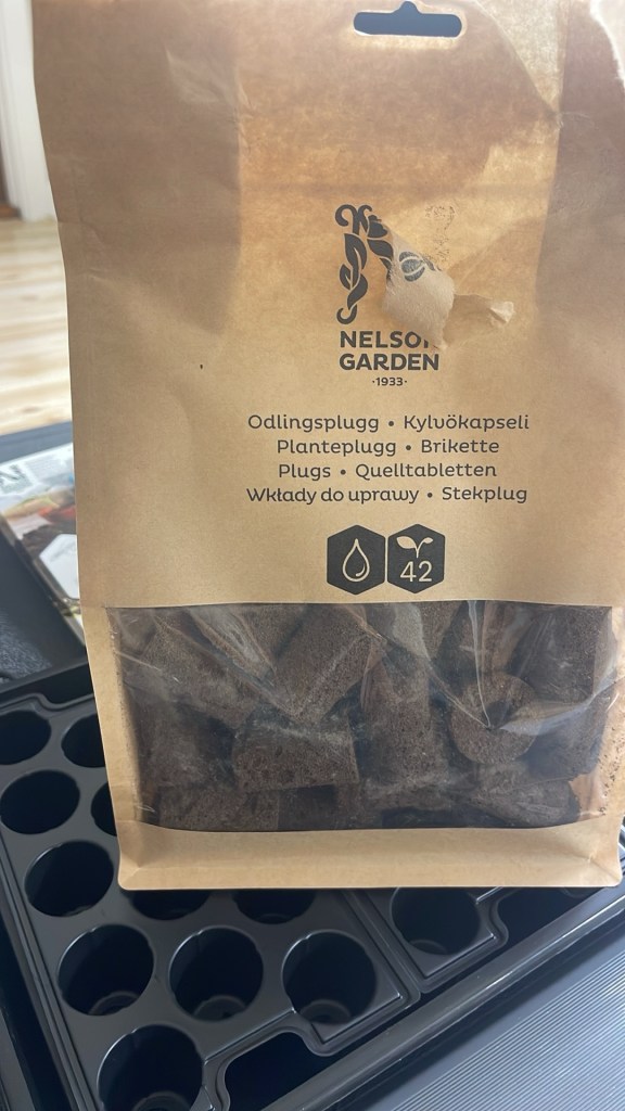 Även rotsellerin har jag sått i odlingspluggar eftersom det är så mycket enklare än att hålls med jord inomhus.