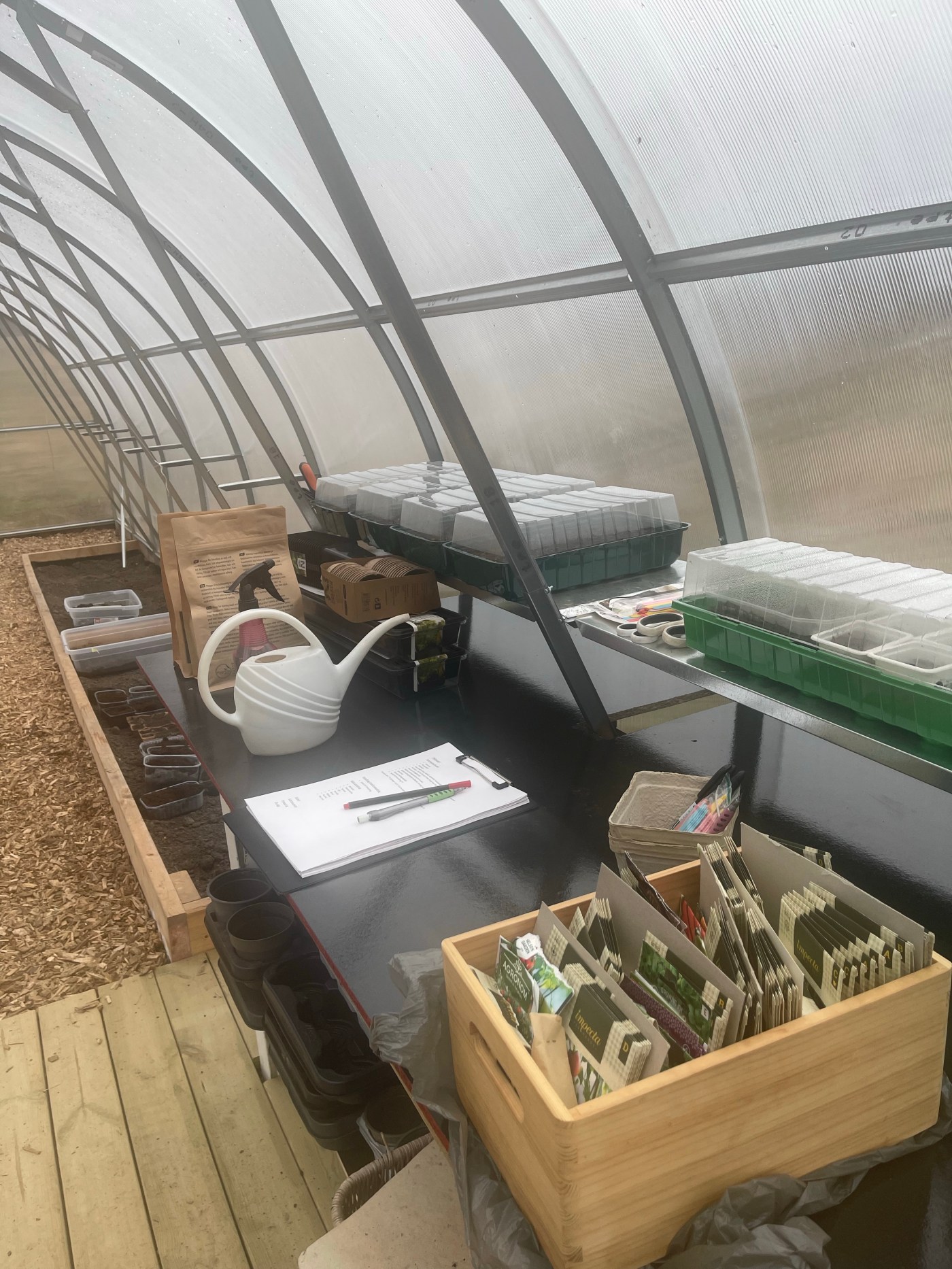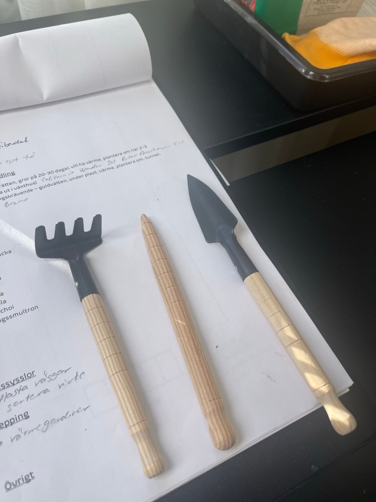 Så jag tog med mig lådan med fröer, redskap, vattenkanna och min checklista ut i växthuset.