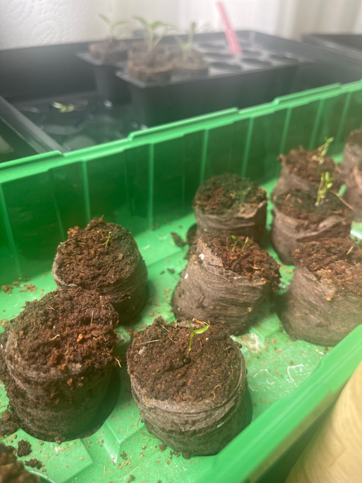 Några groddar visade sig vara ogräs och fick ge sig av – och i vissa pluggar har det växt mögel…