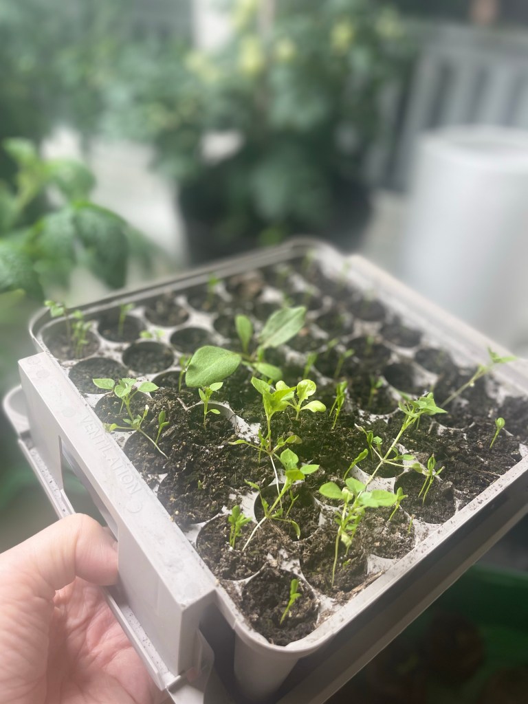 Idag sådde jag i såna där små plasttråg – ”vindruvstråg” – genom att strö ut fröna.
