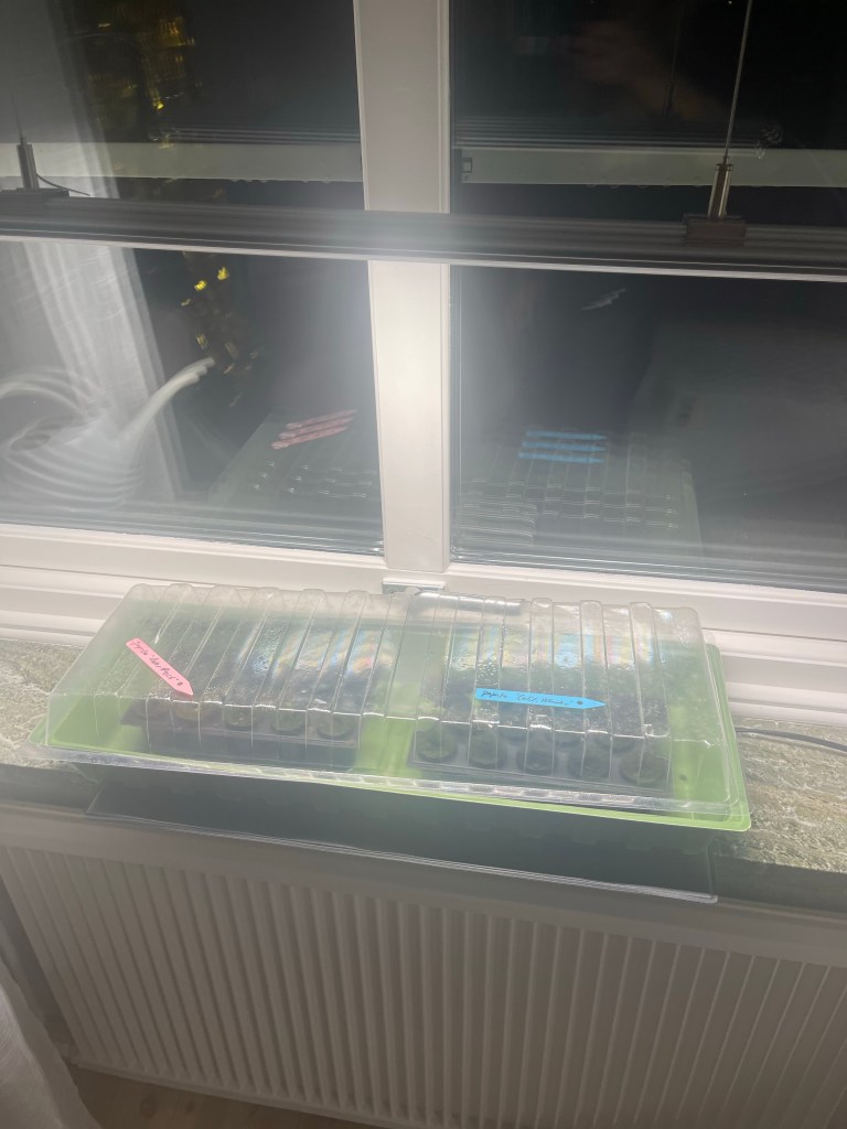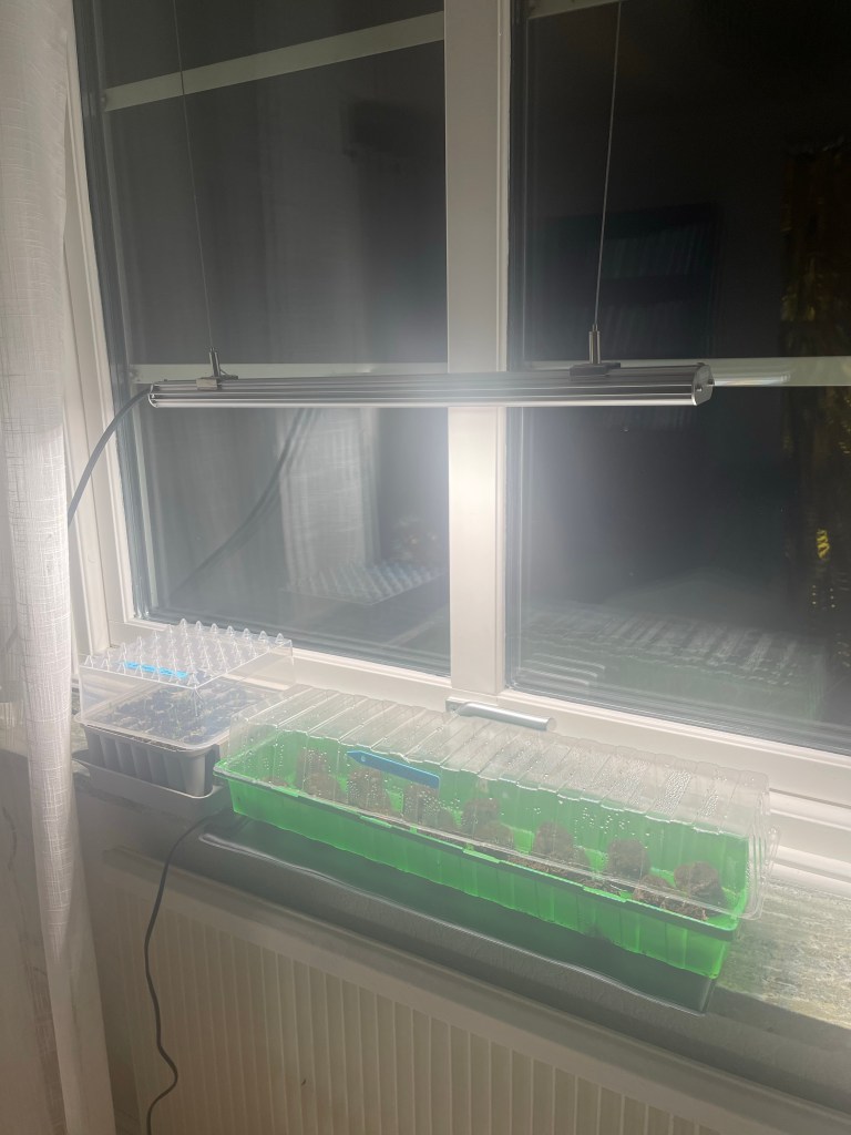 Nu har jag flyttat ner de här två sådderna till vårt bibliotek där jag har möjlighet att skärma av och stänga av elementen.
