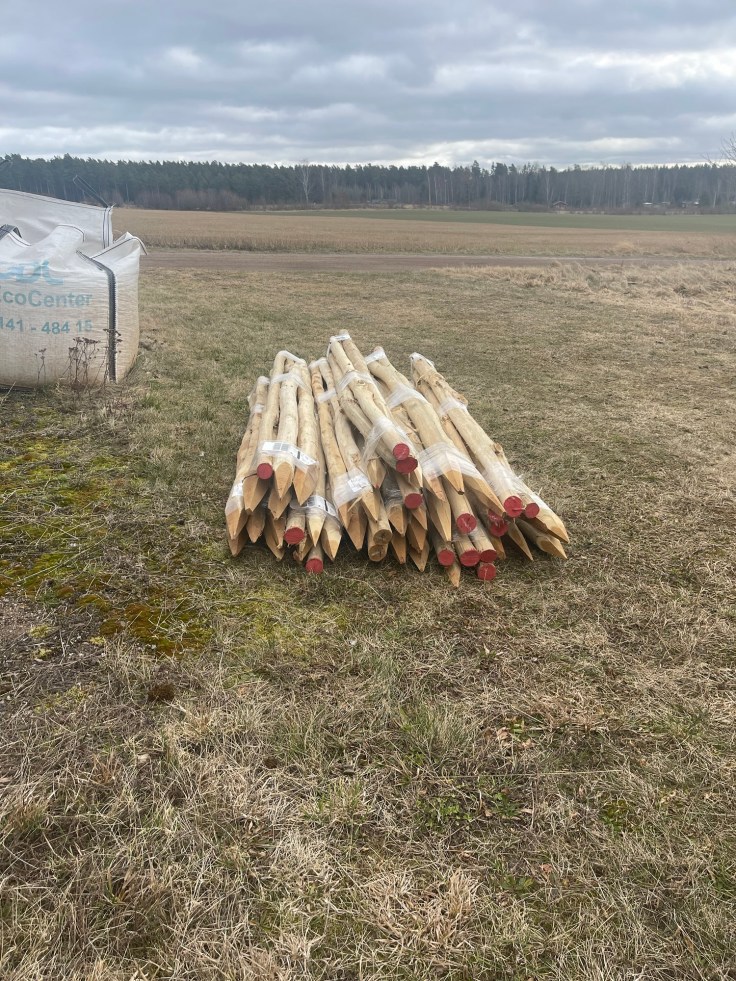 Femtio stycken stolpar av Robiniaträ med en längd på 2,5 meter.