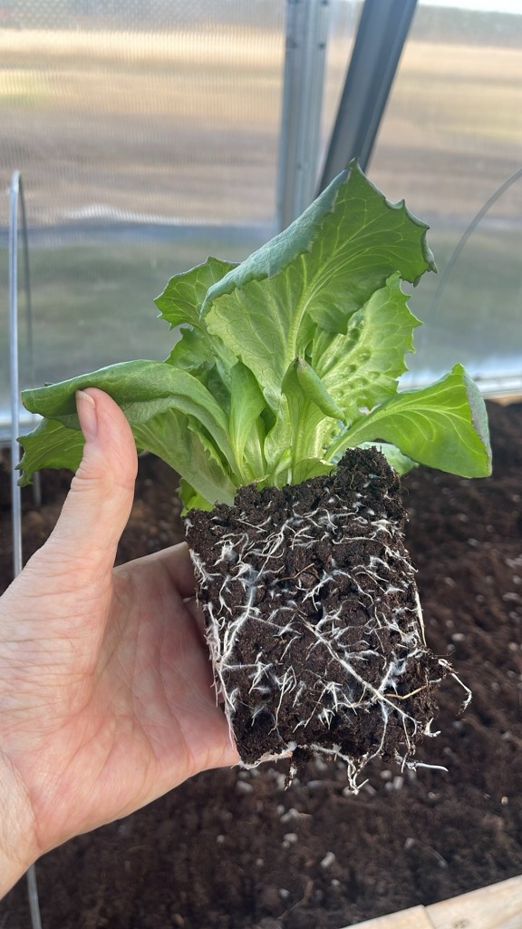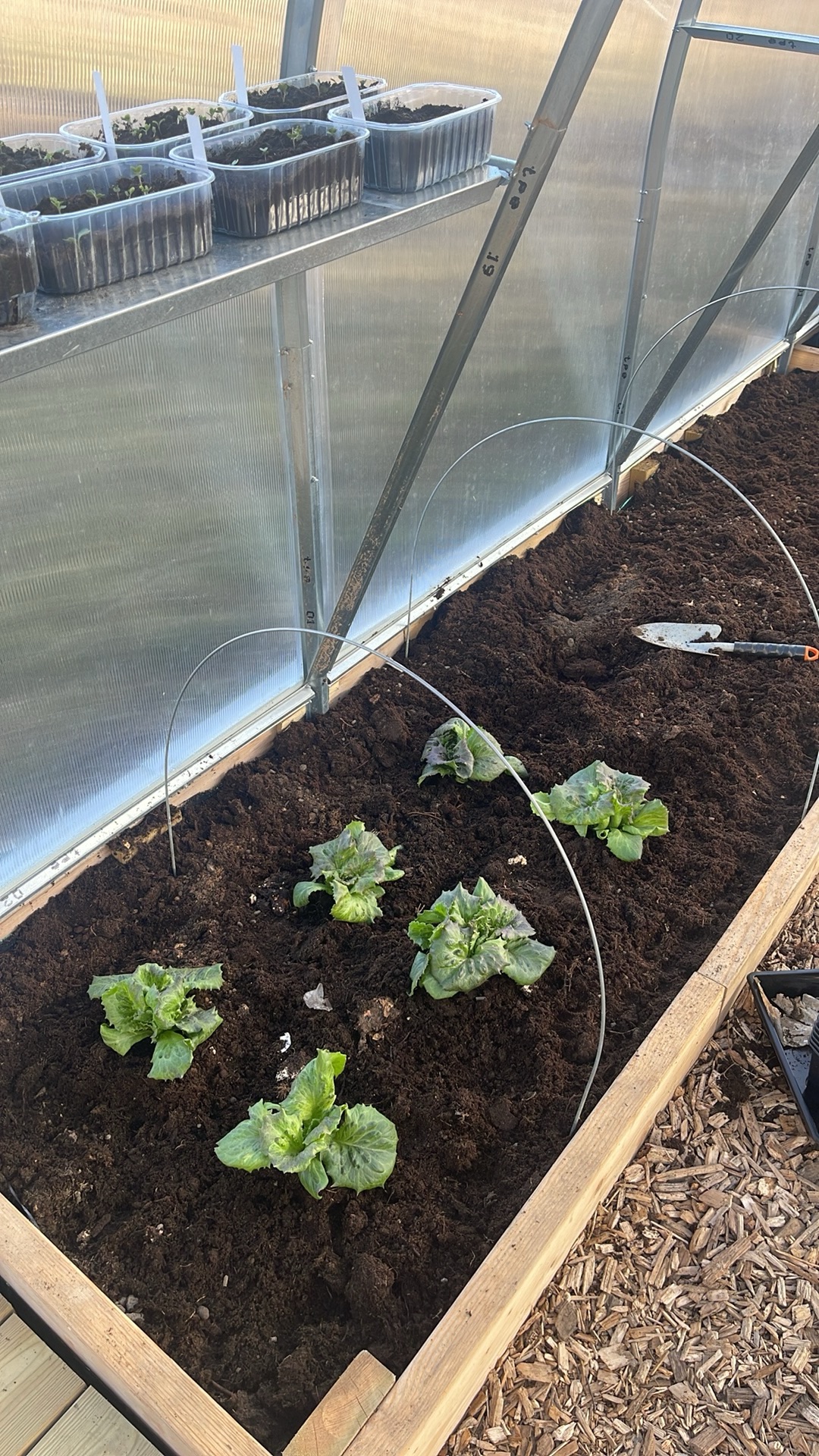 Rejält stora plantor av isbergssallad längtade också ut samtidigt som utrymmet inne snart behövs för potatis och sådd av gurka.