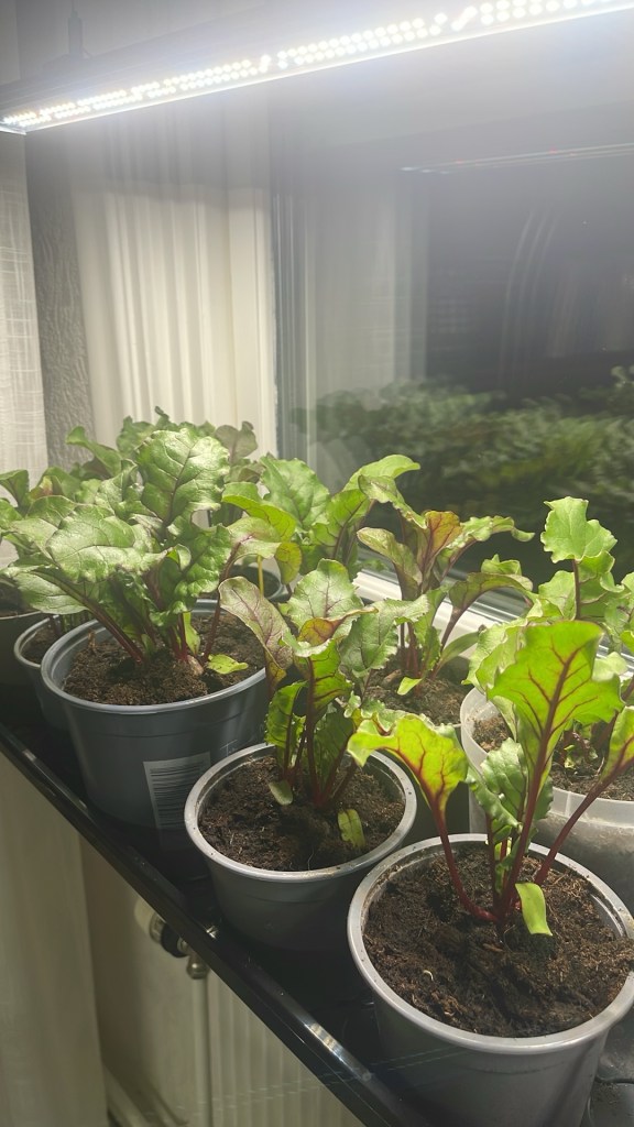 Likaså rödbeta som jag av någon anledning redan sått inne. Blasten har oanade proportioner men vad döljer sig under jorden?